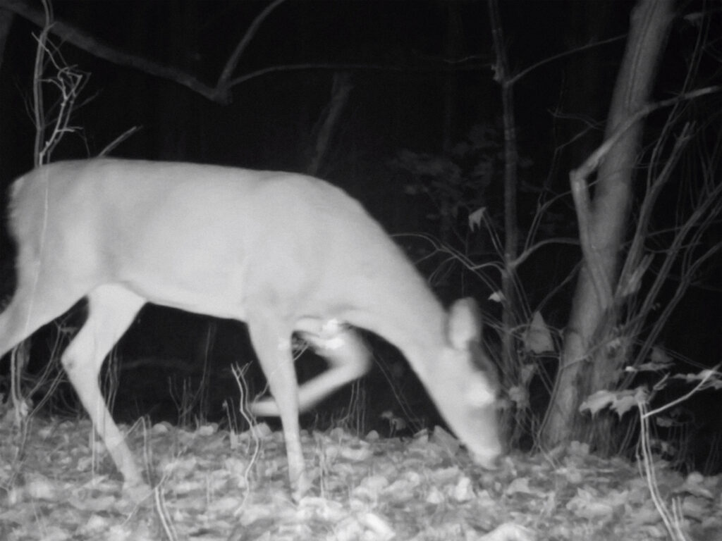 The Nightlife project is the culmination of research conducted during a one-year residency at the Mount Pinacle Land Trust. Throughout the seasons, thousands of images and videos were collected from infrared trail cameras placed in the forest. The work reveals the strange beauty and vulnerability of animal life that awakens each day in the twilight. By capturing these fleeting presences in time, Nightlife au mont Pinacle questions our relationship with the living world, our environment, and the fragility of our coexistence with species that our senses struggle to perceive, but which, conversely, directly feel the impact of our lifestyles.